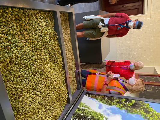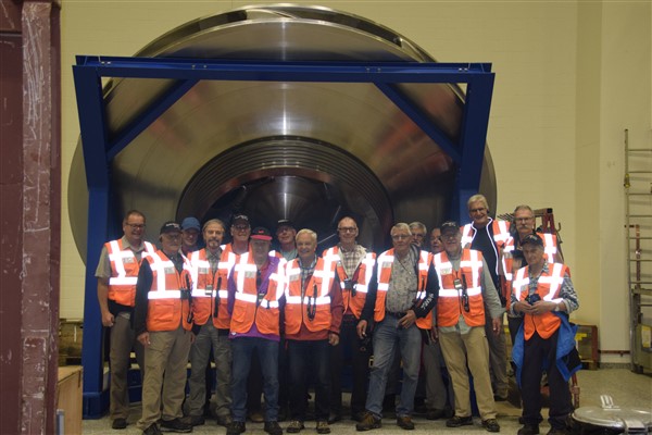 Dort erwartete uns eine interessante zweistündige Führung. Kompetent wurden wir in die Geheimnisse der Salzgewinnung und Veredelung eingeweiht und bestaunten die höchste Holz-Salzlagerhalle der Schweiz. Wegen des schnee- und kältearmen Winters 2019/20 war die Halle bis zur Decke mit Strassensalz gefüllt - imposant anzusehen! Bestellungen kommen aus der ganzen Schweiz, und der Bedarf für den nächsten Winter ist bereits jetzt wieder parat. Es wurde uns erklärt, dass die sonst dauernd laufende Produktion deshalb gestoppt werden musste, was hohe Kosten für die Wiederinbetriebnahme verursacht.