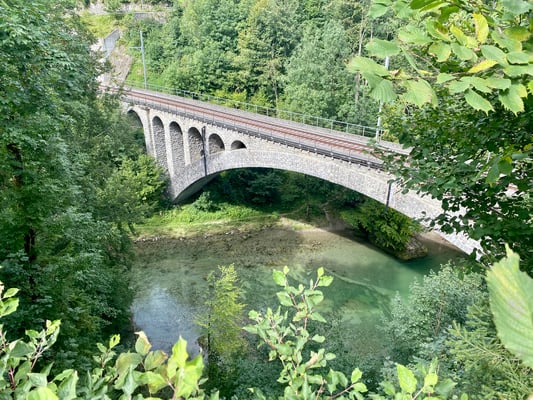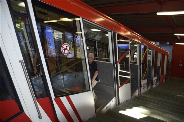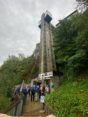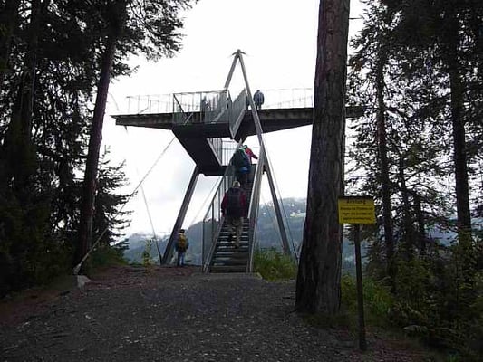 Vom Caumasee hoch nach Flims fährt normalerweise ein steiler Schräglift, aber glücklicherweise war dieser gerade in Revision, sodass wir den steilen
