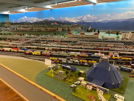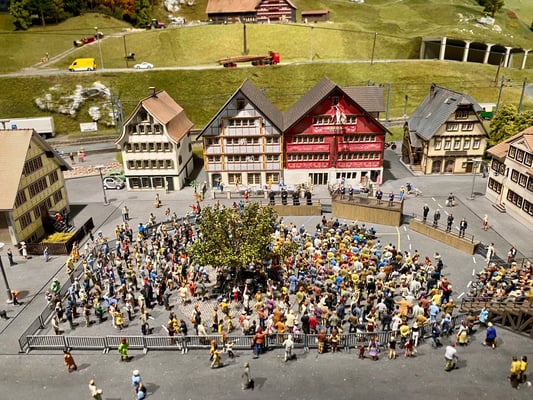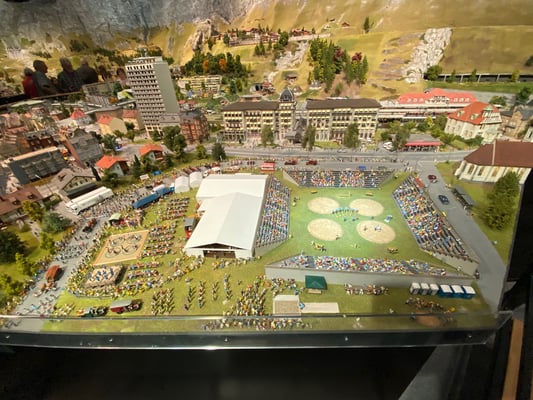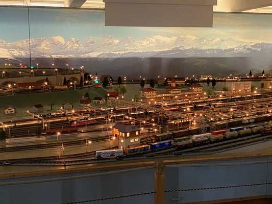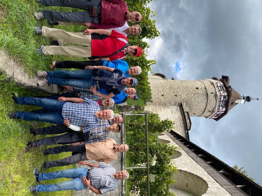 Die diesjährige Turnfahrt führte uns in Richtung Schaffhausen. 13 Männerriegler besammelten sich am Bahnhof Horgen See, wo wir den Zug über Winterthur zum Schloss Laufen nahmen. Dort angekommen gab es einen kurzen Spaziergang zum Rheinfall. Auch wenn das Wetter nicht gerade sonnig war, zeigte sich der Wasserfall von seiner besten Seite. Nach einer Kaffeepause machten wir uns zu Fuss auf den Weg über die Eisenbahnbrücke nach Neuhausen. Dort erwartete uns der Besuch der Eisenbahnminiaturwelt «Smilestones». Das «Smilestones» ist eine kleinere Ausführung vom weltbekannten Miniatur Wunderland in Hamburg, aber mit genauso viel Liebe zum Detail gestaltet: 250m2 Anlagenfläche, 1,3 km Schienen, 120 Züge, 700 Autos, 550 Häuser, 12'000 Bäume und 23'000 Personen sind in dieser Anlage verbaut. Wollte man alle Details anschauen, man bräuchte Tage! Nach der individuellen Besichtigung durften wir einen kurzen Apéro geniessen, bevor es dann mit dem Bus zum Bahnhof Schaffhausen ging. Dort angekommen schlossen wir unsere Rucksäcke ein und machten uns auf den Weg durch die Altstadt zum Weinkeller von Marlies Keller. Wir durften dort 2 verschiedene Weissweine aus der Region degustieren und zum Mittagessen, welches aus Weinwurst mit Kartoffelsalat bestand, gab es auch noch einen Pinot Noir. Frisch gestärkt machten wir uns auf den Weg zur Schifflände, wo uns bereits die Munotwächterin Karola Lüthi erwartete. Sie erzählte von ihrem Job, z.B. jeden Tag um 21:00 das Munotglöckchen von Hand zu läuten und führte uns dann durch unterirdische Gänge und der Mauer entlang bis hoch zum Turm der Festung, wo uns eine herrliche Rundsicht erwartete. Von dort aus ging es zurück zum Bahnhof und mit dem Zug weiter ins deutsche Lottstetten. Ein kurzer Fussmarsch brachte uns zum Hotel Holzscheiter, welches uns für die Übernachtung beherbergte. Das Nachtessen nahmen wir in einem nahen Restaurant ein, welches von einem jungen Team geleitet wurde. Dass die Köchen verliebt ist, haben wir an der Polenta bemerkt, welche ziemlich versalzen war. Zur Schadensminderung gab es dann einen Grappa. Ansonsten war das Essen ausgezeichnet, bürgerlich und zu günstigen Preisen. Da uns die Atmosphäre gut gefiel, blieben wir noch bis nach Mitternacht.