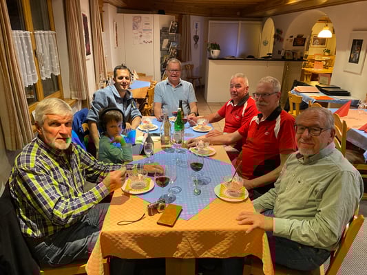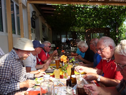 Ein reichhaltiges Nachtessen – mit Nachservice – und anschliessendem Schlummertrunk in der Gartenwirtschaft beendete einen sonnigen, aber von der Wegstrecke her sehr anstrengenden ersten Tag.