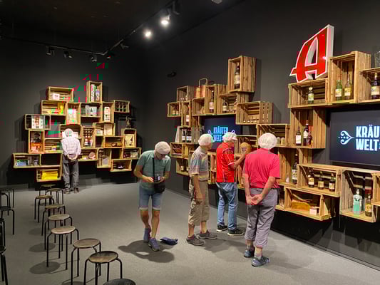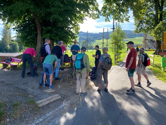 Alle Jahre wieder, Anfangs September, findet unsere 2-tägige Turnfahrt statt. Besammlung war kurz nach 7:00 am Bahnhof See. Einige schauten noch beim Nachfolger der Bäckerei Schnyder vorbei, um einen ersten Eindruck zu erhalten und das notwendige Gipfeli vor der bevorstehenden Tour zu erwerben. Mit von der Partie war zum ersten Mal auch unser Präsi Patrick, der seinen 5-jährigen Sohn Nino mitnahm. Um 07:30 gings los Richtung Pfäffikon SZ, dann Umsteigen in den Voralpenexpress nach Herisau. Um sämtliche bösen Keime abzutöten, brachte Peter Stünzi einmal mehr ein Fläschchen Schnapps mit, welches unterwegs gerecht verteilt wurde. Von Herisau ging es weiter nach Jakobsbad, wo uns unser Wahl-Appenzeller Marcel (Höfi) Hofer mit einem Appenzeller-Shot begrüsste. Kurz danach wurden Socken und Schuhe ausgezogen und wir nahmen den Barfussweg Richtung Gonten unter die nackten Füsse. Unterwegs, meist auf Gras, durften wir die herrliche Umgebung geniessen. In Gonten angekommen, bestiegen wir wieder den Zug und fuhren Richtung Appenzell. Nach einem kurzen Fussmarsch kamen wir im Restaurant Sonne an, wo wir ein währschaftes Menu (z.B. Siedwurst, Chäshörnli mit Böllä) aussuchen konnten. Da wir bis zum nächsten Termin noch etwas Zeit hatten, besuchten wir noch kurz das Besucherzentrum «Brauquöll» der Brauerei Locher. Unglaublich, welche Menge verschiedenen Biers die Firma herstellt! Natürlich mussten wir noch das eine oder andere unbekannte Bier probieren. Weiter gings zu Fuss zum nächsten Höhepunkt, dem Besuch der Firma Appenzeller Alpenbitter. Dort erwartete uns eine rund 1 ½-stündige Führung, bei welcher wir die verschiedenen Kräuter und das Herstellungsverfahren kennen lernten. Leider hat uns aber niemand das «geheime» Rezept verraten. Trotzdem hat uns die kleine Degustation danach sehr gut geschmeckt. Auf Schuster’s Rappen nahmen wir danach den rund 1-stündigen Weg nach Weissbad in Angriff. Dort angekommen bezogen wir unsere Zimmer im Garni Loosmühle und trafen uns kurz darauf zum Apéro. Ein kurzer Fussmarsch «de Hoger uf» brachte uns zum Hotel Restaurant Belvedere, wo wir für den Znacht reserviert hatten. Auch hier war das Essen ausgezeichnet und die Portionen ziemlich gross, so dass die meisten auf ein Dessert verzichteten. Gegen 22:00 machte sich die Gruppe wieder auf den Weg zurück in die Unterkunft. Nach einem «Schlummi» verschwand einer nach dem anderen in seinem Zimmer, um am nächsten Tag ausgeruht bereit zu sein. Immerhin standen ca. 20'000 Schritte auf dem Tacho.