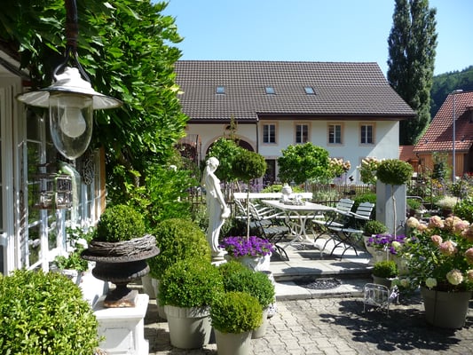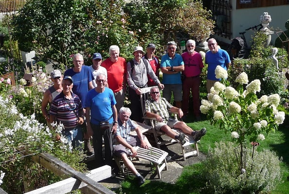 Ganz vorsichtig absteigend und wieder auf schönen Wegen erreichten wir Thalheim. Gerry führte uns zu einem grossartigen Garten auf eine schattige Loggia und einem Apéro riche.