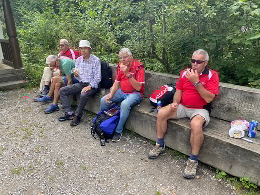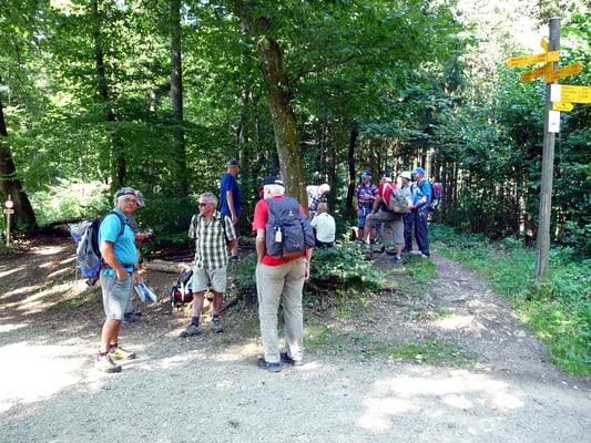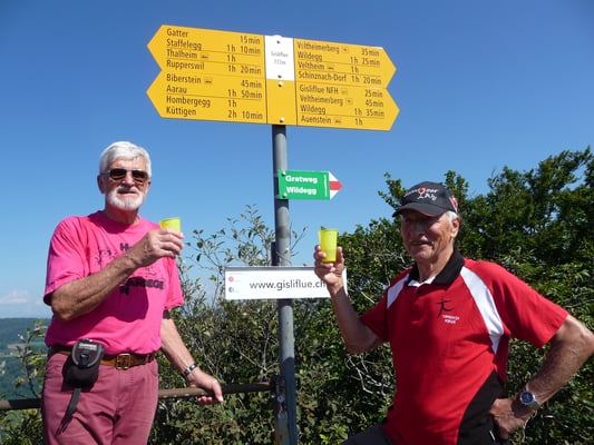 Neu motiviert startete eine Wanderung entlang und in schattigen Wäldern. Nach etwa anderthalb Stunden begann der Weg immer steiler zu werden, um vor dem Ziel – der Gisliflue, 772 Meter hoch – eine echte Alpinwanderung zu werden. Die grossartige Aussicht und von Beat hochgetragene Getränke, belohnten aber die Anstrengungen.
