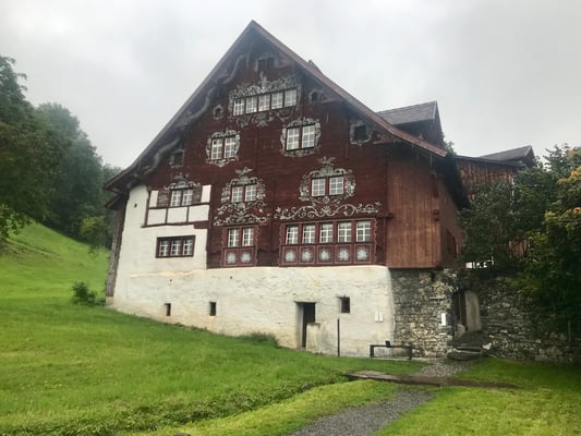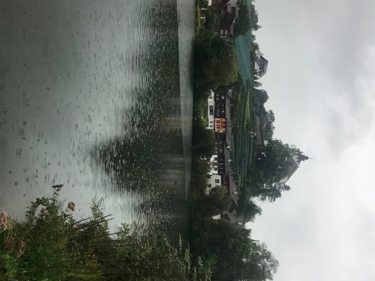 Am nächsten Morgen regnete es in Strömen, Sicht gleich null. Dank vielen Handy's haben wir das schon am Vortag erkannt und die vorgesehene Wanderung vom Übernachtungsort zum Voralpsee – ca. 3 Stunden – aus Sicherheitsgründen abgesagt. Stattdessen kehrten wir mit dem Bus nach Buchs zurück und umrundeten im Regen den Werdenbergersee mit dem herzigen, alten Städtchen Werdenberg. Trotz vorverschobener Weiterreise blieb genügend Zeit für die Besichtigung des Schlosses Werdenberg und, was denn sonst, einen Apéro im Schloss-Bistro.