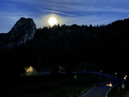 Von dort sah man erstmals auch das Ziel des zweiten Tages: die Sprungschanzen von Einsiedeln. Nach der obligaten Einkehr im Gipfelstübli brachen wir auf zum Tagesziel Ibergeregg. Nach Apèro auf der Terrasse, einem feinen Nachtessen und anschliessendem Schlummertrunk, übernachteten wir in Doppel- und ungewohnten, aber problemlosen Viererzimmern.