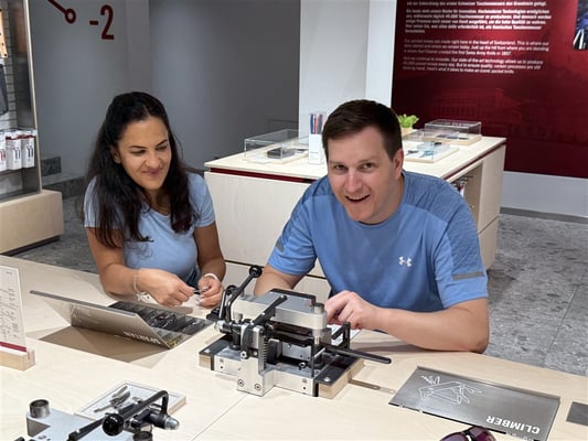 Zu Beginn der diesjährigen Turnfahrt musste als erstes die Riesenbaustelle des Bahnhofs Oberdorf bezwungen werden. Danach aber strebten 13 grosse und ein kleiner Turner Richtung Brunnen. Bei der weltweit bekannten Firma Victorinox durfte jeder Teilnehmer selber – unter kundiger Anleitung – ein klassisches Sackmesser zusammenbauen. Im vorher festgelegten Schichtbetrieb fertige jeder sein individuelles Messer, während die andern bei Kaffee und Gipfeli die Wartzezeit überbrückten.