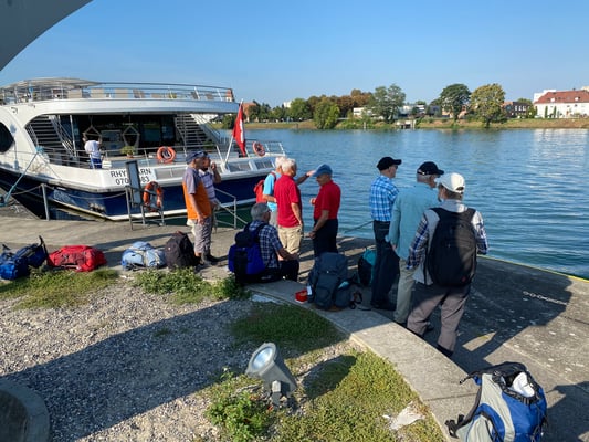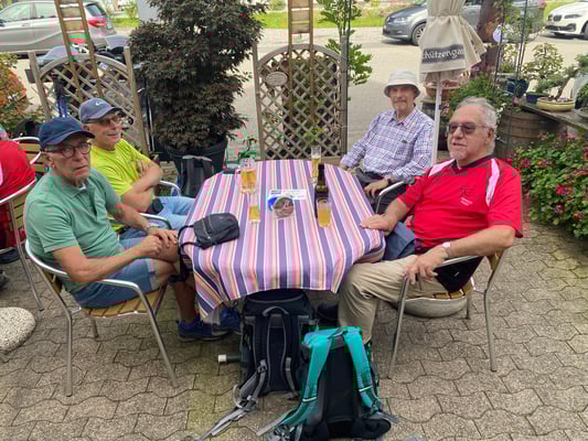 Nach dieser Essenspause stand nun die anstrengendste und letzte Etappe bevor. Vier Kameraden bevorzugten die Bahnfahrt ab Beuggen via Rheinfelden nach Möhlin, und Beat, der aus gesundheitlichen Gründen alle Wanderstrecken mit dem Elektrofahrrad absolviert hatte, verabschiedete sich von uns auf den Heimweg zu seinem dt. Zuhause.