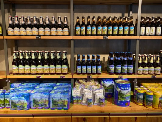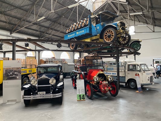 Beeindruckend waren die Erklärungen über die Bierherstellung mit Übersichtsbildern, sowie die imposante Brauhalle mit 4 Braureihen und den Original-Messingkesseln, die natürlich innen mit modernsten Materialien der heutigen Zeit angepasst wurden. Die Originalkessel werden täglich gehegt und gepflegt und sehen wie neu aus. Dann ging es runter in die Keller, wo die Gärung der Biere mittels Kühlung gestoppt werden muss und Aromastoffe dem Sud beigemischt werden, damit die Rezeptur eingehalten werden kann. Danach konnten wir die verschiedenen Lagerungs- und Abfüllvorrichtungen besuchen. Den Verlad der Fässer, Harasse, ja ganzen Tanks auf Lastwagen und Bahn oder Pferdekutschen, konnten wir wegen Sonntagsbesuch (arbeitsfrei) nicht beobachten. Umso mehr genossen wir aber die Besichtigung des riesengrossen Museums mit Fahrzeugen aller Art, die je für die Brauerei Feldschlösschen im Einsatz gestanden waren. Auf die Besichtigung der Pferdestallungen mussten wir dann aber verzichten, damit wir noch die Zeit fanden, die offerierte Bierdegustation und den Brezel geniessen zu können. Von der riesigen Auswahl konnten wir aus Alkoholpegel- und Zeitgründen leider nur einen sehr kleinen Teil testen, da auf 12.15 Uhr die Fortsetzung des Tagesprogrammes angesagt war.