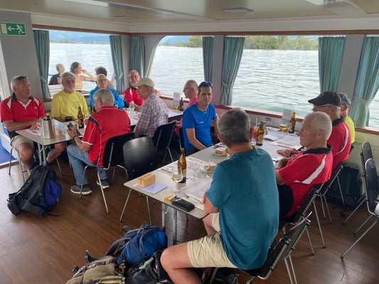 Alpenrheintal bis zum Bodensee geniessen. Und was kam als Nächstes? Richtig, ein Apéro und ein Nachtessen und – etwas ungewohnt für die Männerriege - um 22 Uhr Lichterlöschen, weil kein Personal
