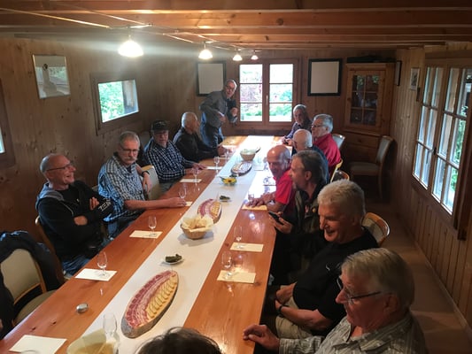 Marcel Seinet, der diese Reise organisierte und zum Apéro in seine gemütliche Ferienwohnung einlud. Für das gemeinsame Nachtessen im Hotel Pöstli, Affeier, überraschte uns der Hausherr mit einem