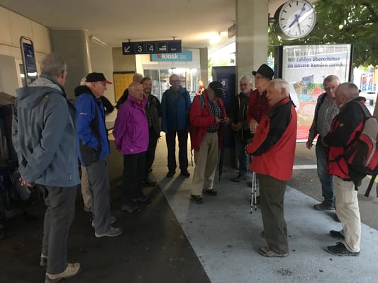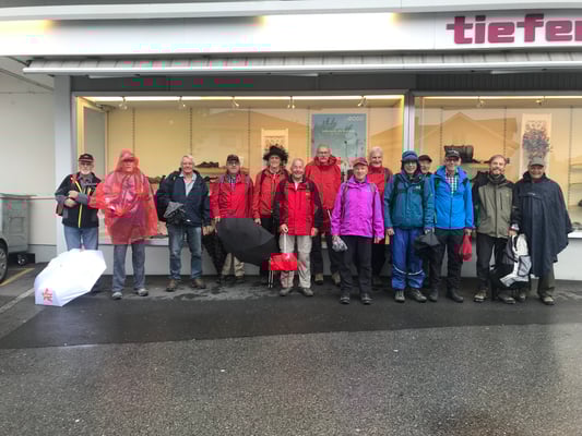 Teilnehmer statt mit Wanderstöcken mit einem Regenschirm am Treffpunkt Bahnhof Horgen ein. Aber wie von der MR gewöhnt, hatte diese Tatsache keinen Einfluss auf die gute Stimmung.