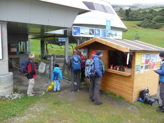 aus dem eigenen Wingert fand regen Zuspruch. Die letzte Etappe an diesem Tag setzte sich aus einer Busfahrt mit drei verschiedenen Buslinien zusammen. Am Schluss landeten wir auf 1371 Metern über