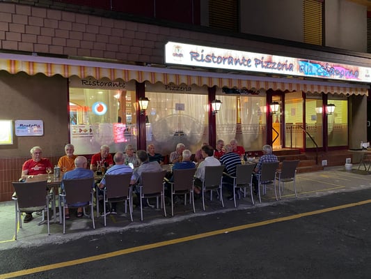 In der nahen Pizzeria Da Giacomo genossen wir die riesigen Pizze und schmackhaften Pastagerichte, jeder nach seinem Geschmack! Während und nach dem Essen hatten wir auch Zeit um Erlebnisse und Gedanken lebhaft auszutauschen und dabei auch genügend zu lachen. Die Zeit verging im Fluge und der tolle Abend unter freiem Himmel und ein erlebnisreicher Tag ging seinem Ende entgegen. Dieser Abschluss fand etwas unterschiedlich lang statt, aber alle wussten, dass am Sonntagmorgen um 8.15 Uhr das Frühstück angesagt war.