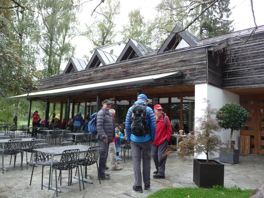 Nach dem Zwischenhalt führte der Weg steil abwärts zur Talstation der Holzeggbahn, gleichzeitig Postautohaltestelle. Um unser Tagesprogramm einhalten zu können, nahmen wir bis Trachslau ebendieses Posti. Zum Mittagessen waren wir im schönen Rest. Tändli angemeldet und durften sogar à-la-carte bestellen.