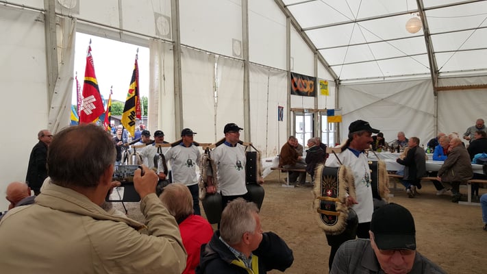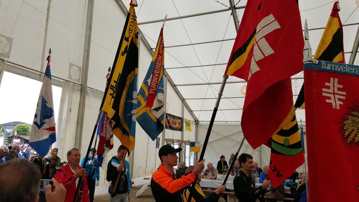 Veteranen waren angemeldet und das Festzelt füllte sich. Alte Turnkameraden wurden entdeckt und begrüssten einander, die Stimmung war friedlich und freund¬schaft¬lich. Obwohl die Bühne und das