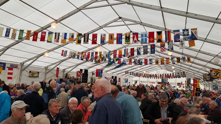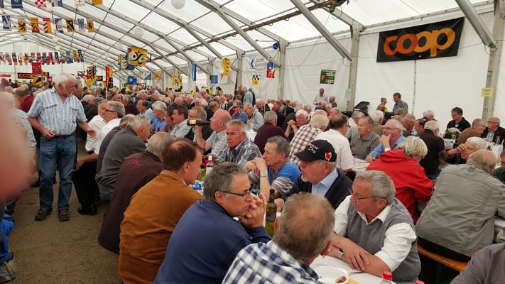 das riesige Festzelt begeben und erst unseren Morgenkaffee mit Gipfeli oder Nussgipfel geniessen. Zu hinterst im Sektor Block G, Tisch 4 waren 6 Plätze für die Horgner reserviert. Über 1500