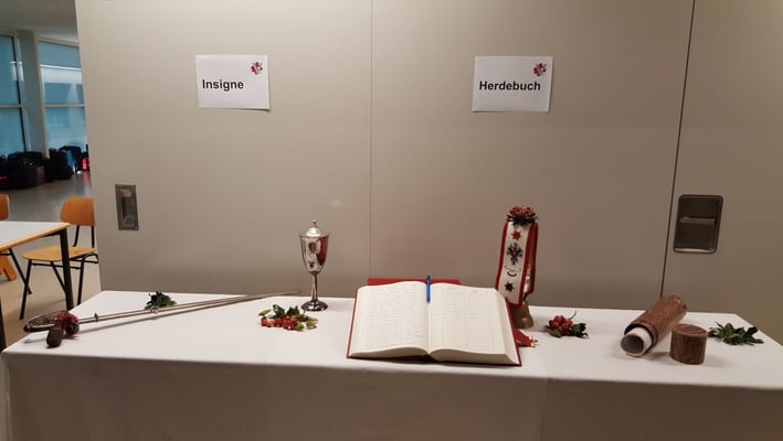 Bei der feierlichen Uebergabe der Insignien, das sind: Fahne, Glocke, Herdebuch, Kelch, Rodel und Säbel, wurde von der Abordnung aus Delémont an Brugg/Windisch überreicht. Sie werden nun Brugg/Windisch für ein Jahr sorgsam aufbewahrt, auf dass die Insignien dann im Oktober 2017 in Montreux dem dortigen OK übergeben werden können.