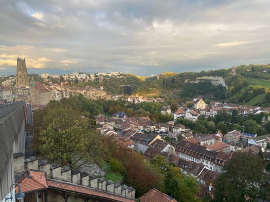 Die diesjährige ETVV-Landsgemeinde führte uns nach Freiburg. Wie immer wurde für unsere Gruppe Zürichsee-Oberland ein sogenannter Vorkurs organisiert, sprich man geht einen Tag früher, geniesst die Umgebung, schaut etwas an und übernachtet am Veranstaltungsort. 9 Veteranen aus Horgen wurden am Samstagmorgen mit dem Car abgeholt und nach Zürich chauffiert. Dort stiegen weitere Teilnehmer zu und es ging los Richtung Röschtigraben. Den ersten Halt machten wir auf dem „Guggisberg“, wo uns ein feiner Apéro serviert wurde. Der Vreneli Chor Guggisberg brachte uns danach musikalisch und in Erzählform die Geschichte vom „Vreneli vo Guggisberg“ näher. Weiter ging es Richtung Schwarzsee, wo dann da Mittagessen stattfand. Leider war das Wetter eher mittelprächtig, doch man konnte trotzdem die herrliche Umgebung geniessen. Gegen 16:00 kamen wir in Freiburg an, wo uns eine Stadtfahrt mit dem Minizug bevorstand. In einer knapp einstündigen Tour erfuhren wir viel Wissenswertes über die Stadt Freiburg. Danach ging es zu Fuss oder mit dem dem Car Richtung Saane, wo uns bereits das Nachtessen erwartete. Gut verpflegt verschoben wir uns dann ins Hotel Ibis und genossen die Bar bis um Mittarnacht.